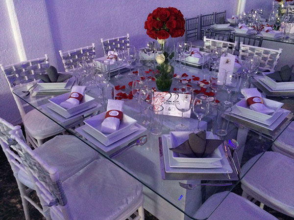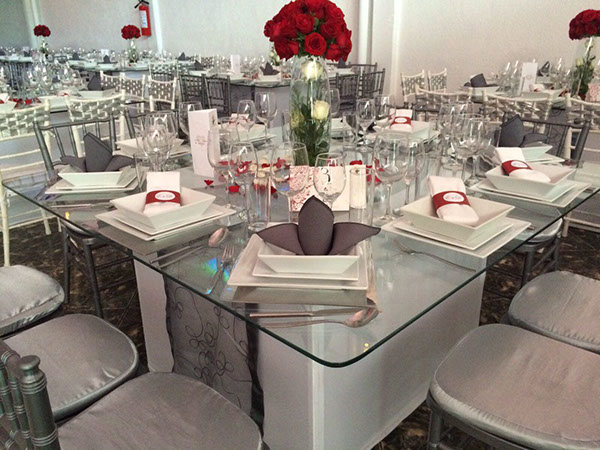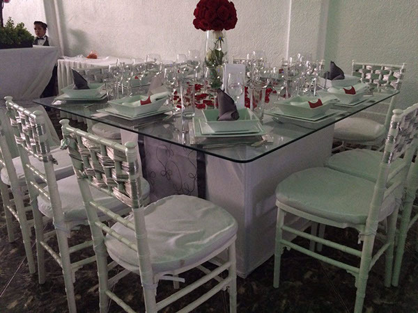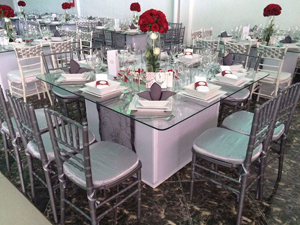 No encontrarás mejores mesas de cristal en el mercado, un cristal grueso y delicadamente cortado para la comodidad y belleza de tu montaje.
