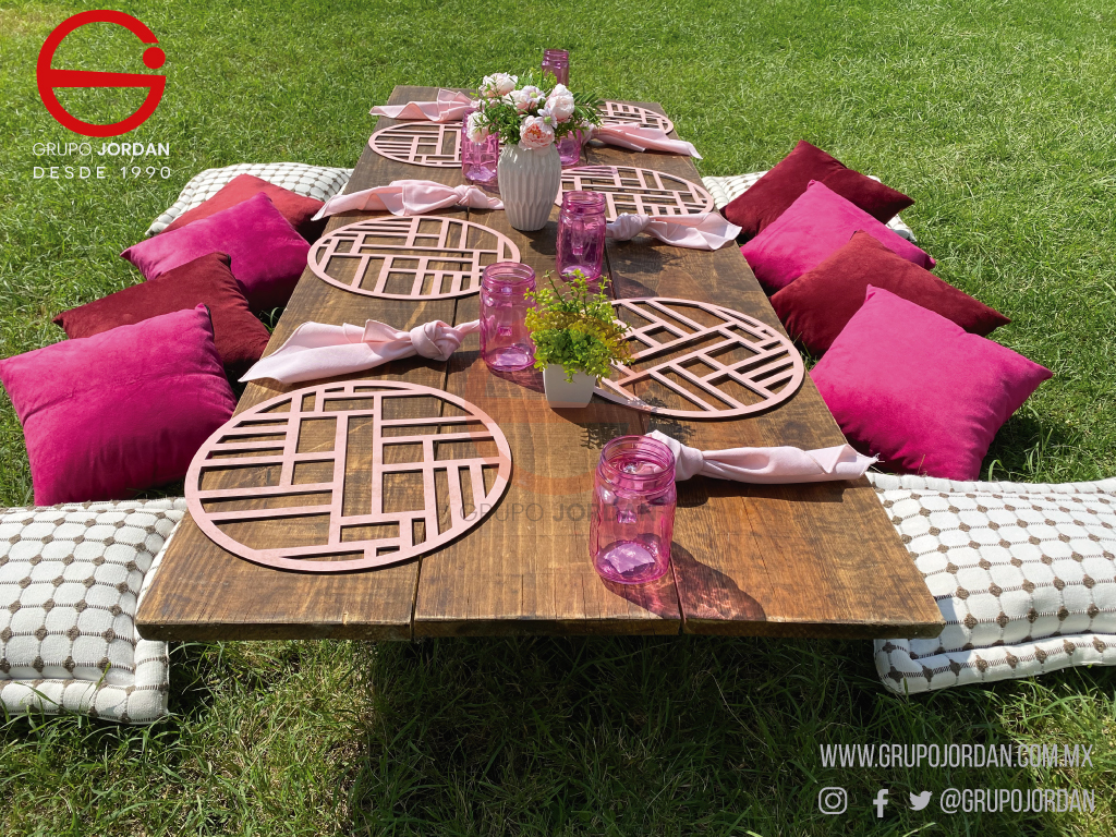 eventos donde el cliente desea innovar y llevar su evento al siguiente nivel, a pesar de ser una mesa muy cercana a nivel de piso su montaje junto con cojines la hace bastante cómoda.